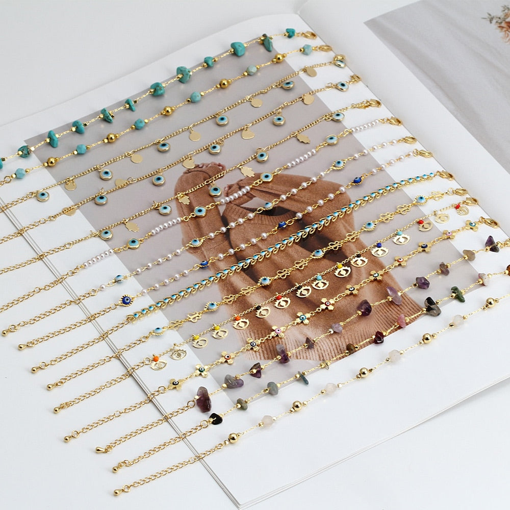 Introducing the Charm Bracelet! This beautiful bracelet is made of high quality materials, including copper, pearls, and natural stones. It's the perfect accessory to add a touch of elegance to any outfit. The Charm Bracelet is also a great gift for any occasion.